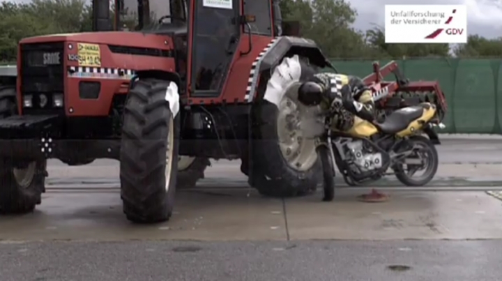 Amikor találkozik a motoros egy mezőgazdasági járművel.